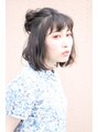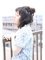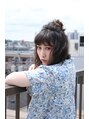 ミディアムボブのハーフアップアレンジ。ラフなお団子になってます。
