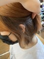 インナー部分が暗いバージョンのヘアスタイルです!インナーはナチュラルブラウンで、表面はブリーチ有りのWカラーでオレンジに♪他人と差がつく個性的なヘアスタイル☆