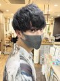 ブリーチをしてダークグレーを入れ、癖っ毛を活かした動きのあるマッシュスタイルです♪