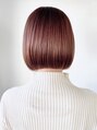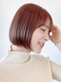 アゴラインのミディアムショートスタイルです。前髪は薄めにつくり、重くならないようにカット。幼くなるのが苦手な方にもオススメです。カラーはブリーチを1度してから9レベルのカッパーブラウンをかぶせています。光沢感があり、色っぽさを引き立てます。