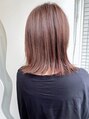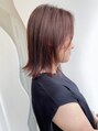 ハイライトを全体に細く入れて、上から9レベルのクリームグレージュをオンカラーしています。カットは肩下のワンレングスです。ストレートアイロンで外ハネにしてオイルヘアバームでスタイリング