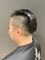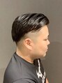 サイドは大胆なハイフェード、バックはローフェードに刈り上げ、トップの長い髪を片側に流した震災刈りスタイル。ハードな印象ですが、頭の形、髪質、M字などの悩みをカバーしやすいスタイルなので、30代、40代のおしゃれビジネスマンにも人気の髪型です。