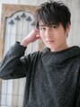 トップを立ち上げてスタイルアップ効果を狙った、アシンメトリーな無造作ショート。斜めバングで目元を印象付けてセクシーに。爽やかな黒髪サイドパートはビジカジスタイルにもピッタリ。