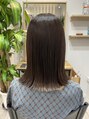 - 切りっぱなしのカットに6トーンの赤みを抑えたグレージュカラー※メニューご相談◎