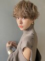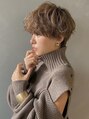 ウエイト高めのマッシュベースに丸みと動きを合わせて甘すぎない絶妙なニュアンスを演出。カラーはハイトーンのカーキベージュで重めバングに合わせて透明感を出し動きの見えるカラーに。