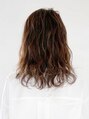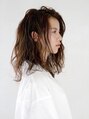 大きめのカールが特徴のセミロングスタイル。ふわっとラフな質感のニュアンスウェーブで華やかさを演出し、顔周りの外ハネで今っぽさもプラスしています。