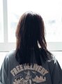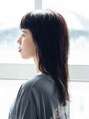 ワンレンベースのロングに顔まわりは軽さが出るようレイヤーをいれ、カラーはシックなブルーアッシュでモノトーンな印象に!顔周りの軽さが重ための バングを強調させ短調にならないワンポイントのあるスタイルに!![船橋/船橋駅]