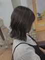 カットはミディアムベースのスタイルに量感調整、質感調整を入れています。カラーはベースに暗めのアッシュ系カラーを入れハイライトの部分にはグレー系の色を使っています。