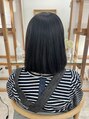 くせ毛さんでロングヘアだとおさまり良かったりしますが、短くなると広がりやすかったりするので、全体的にストレートパーマでおさまり良く仕上げました。肩につくぐらいだと1つにもくくれます。前髪はシースルーで、黒髪なのて重たすぎないように!!