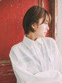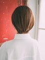 可愛らしいショートボブは顔まわりの毛を少し耳にかけ、襟足はタイトにカットにすることで大人な雰囲気に。カラーリングは赤みを抑えた明るすぎず暗すぎないナチュラルなグレージュカラー。前髪をサイドに流して柔らかい印象に。