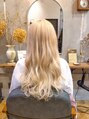 地毛に合わせたホワイトブロンドのエクステでロングスタイルにしています。