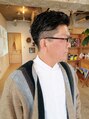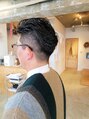 高めの高さからサイドは2ブロック、バックは自然に刈りあげたスタイルに太めのロッドでクセ毛っぽいゆるめのパーマをかけてます。