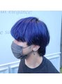 【気に入って頂いたスタイルはブックマークをしてご提示ください】ケアブリーチを使い最小限ダメージで原色に近いブルーカラーに☆マッシュの丸みも活かしながらウルフスタイルにし周りと被らない自分だけのスタイルを提案致します!目黒駅/フェード/メンズ