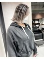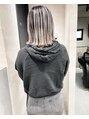 スクエアなボブデザインに、エッジ感タップリの人気のホワイト系バレイヤージュデザインです★筋感ある立体的デザイン★根本はダークグレージュで、毛先にいくに従って、プラチナホワイトベージュに★※2~3ブリーチ必須です
