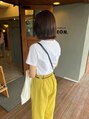 伸ばしかけでも可愛くっ♪首から肩にかけて跳ねる長さなので、仕上げは仕上げにオイルをつけて外はねで♪