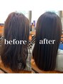 - 高濃度のケラチンコラーゲンを毛髪内部に補給し、超音波アイロンでしっかり浸透させていただくメニューです