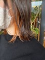 オレンジのインナーカラーで伸ばしかけも可愛く気分転換♪切りっぱなしのラインで肩ハネも気にならない!Instagramにスタイル写真載せています!【Instagram→@nao_cueon】