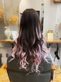 表面は地毛に合わせて黒のエクステをつけて、インナー部分にペールピンクのエクステでインナーカラーにしています。