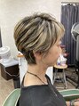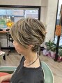 ショートスタイルのハイライトスタイル♪とても素敵な40代のお客様♪カットは顔周りに長さを残して大人可愛いく、襟足はすっきりカット♪ハイライトはコントラストがしっかり着く様に色をしっかり抜いてあげて外国人風に♪