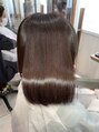 低ダメージの薬剤選定とアイロン前と後のトリートメントこだわった縮毛矯正専用のストレートアイロンによる当店オリジナルの縮毛矯正