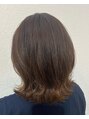 肩口くらいのミディアムスタイル。ここは肩について跳ねやすい長さですが、敢えて毛先は軽くして、外ハネがかわいいです♪アイロンで軽く跳ねさせて、表面は内巻きを意識してかるくアイロンを通せばオッケーです。