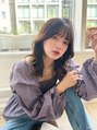 シースルーバングから流れる顔まわり鎖骨付近でのミディアムレイヤーは大得意!韓国のくびれヘアの中に可愛らしさを入れた日韓MIXスタイル!