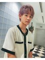 サイドは耳にかかる長さ、襟足は正面から見える長さの王道マッシュスタイル。カラーはパープルアッシュで色落ちもしっかり考えて調合します。