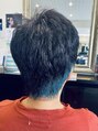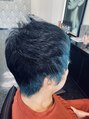 ブラックブルーベースのグレーカラーにポイントカラーでビビットなターコイズカラーをプラスポイントに入れたターコイズカラーは色落ちするとシルバーカラーに変化するので色落ち後はブラックブルー&グレースタイルも楽しめます