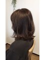 グレージュブラウンで白髪染めをしました。伸ばし中なので毛先に動きが出るようにレイヤーをいれてます。カールアイロンで外ハネに仕上げました。