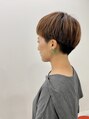 頭の丸みがキレイなシルエット、秋冬仕様のマッシュショート。もみあげも首元もすっきり短く、シンプルなショートスタイル。奥行きある前髪で女性らしい曲線と、明るめのカラーで柔らかい雰囲気になりますね(^-^)