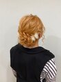 ミディアムぐらいの長さからできるふんわりアップスタイル!!ニュアンスで飾りをつけてみました^^当店でも飾り販売ありますので気になる方はお声がけください^^