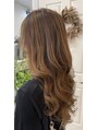 フロントを縮毛矯正、全体ローレイヤーでゆる巻きパーマ♪ブラウン系でカラーリングし表面に+ハイライト♪仕上げにサプリトリートメントでヘアケア♪