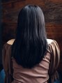 胸上の長さで、少しだけ段の入れたスタイル。暗めのカラーなので厚めのバングと顔まわりを広めに切ることで、顔が明るく見えます。バングが短いと目元を強調させれます。カラーはブラックに見えるけど少し透け感のあるアッシュ。