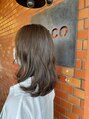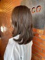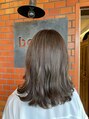 カットはばっさり20センチほど切りました。鎖骨下でレイヤーを入れ、毛先が巻いた時に動きが出るようになじませました。カラーはマットアッシュの8トーンです。
