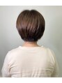 お孫さんのお世話で忙しく、ご来店は4ヶ月に一度。その間キレイに過ごせるように脱白髪染めハイライトで白髪を目立ちにくく♪首にボリュームがあるお洋服は苦手、、ということでしたので襟足は少し夏時期よりも長めで柔らかい印象に仕上げました。