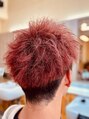 スッキリ爽やかなツーブロアップバングショートに程よくツイストパーマをONすることで束感と無造作な動きが出て変化も付けやすくスタイリングも簡単になって一石二鳥!カラーはリフトしてからレッドブラウン。秋らしさもあってさらにスタイルがオシャレに!
