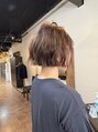 表面は細いハイライト、内側はスライス(面でブリーチを入れる)でしっかり明るさを出しつつ、ベースも残して立体感のあるオシャレショートに仕上がりました(^^) 白髪はぼかして伸びてきてもデザインに馴染むように染めています☆