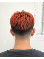 ベリーショートスタイルに、ビビットなオレンジカラーが映えます。刈り上げ部分と根本をあえて黒く残すことによって、オレンジのカラーリングとのコントラストがカッコいいです。【浅草橋/蔵前/浅草/イルミナカラー/インナーカラー/ハイライト/パーマ】