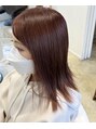 透明感カラーのピンク系でフルカラー肩下ラインのボブをベースに表面にレイヤーを重ねて入れることで、毛先の動きを出やすく、外ハネスタイルにも出来ます。