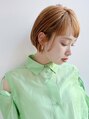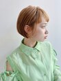 顎くらいの大人ショート、ミニボブ。オレンジベージュカラーで、透明感と柔らかい印象になれます。オイルバームを髪全体に馴染ませるだけのツヤ髪になれる簡単スタイリング。