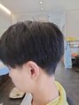 画像では分かりにくいですがセンターパートにしております。横は2ブロに襟足は刈り上げて爽やかさや清潔感が良いです。
