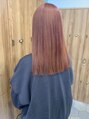 " creamy pink beige " 2~3 bleach. 淡いピンクベージュが可愛い◎ 色落ちはミルクティーベージュに。 ピンクシャンプーを使うと長くピンクカラーを楽しめます♪ カットはぷつっとカットでお洒落な雰囲気に。