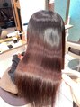 低ダメージの薬剤選定とアイロン前と後のトリートメントこだわった縮毛矯正専用のストレートアイロンによる当店オリジナルの縮毛矯正