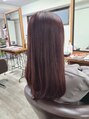 縮毛矯正による髪質改善ストレート。カラーは深みのあるカシスピンクをワンカラーで☆