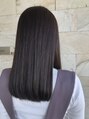 重めラインでまとまりやすくカットしました。ラベンダーブラウンで女性らしい艶っぽいカラーにしました。内部補修のできるトリートメントでさらにツヤツヤ、サラサラにさせて頂きました。