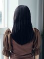 胸上の長さで、少しだけ段の入れたスタイル。暗めのカラーなので厚めのバングと顔まわりを広めに切ることで、顔が明るく見えます。バングが短いと目元を強調させれます。カラーはブラックに見えるけど少し透け感のあるアッシュ。