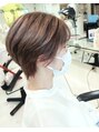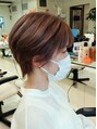 短めのショートに、耳が少し見えるくらいでアクセサリーが映える長さですショート寄りなので少しボリュームの位置を高くしています前髪のデザインで大人っぽさを残しています。