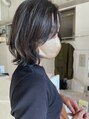 透明感のあるグレージュカラーに顔まわりレイヤーのくびれヘア。韓国風の大人っぽいスタイルになっています。透け感のある暗髪で重たく見えないようなカラーです。