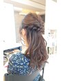 ハーフUPスタイルくるりんぱとツイストで崩しています。