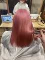 ツヤツヤハイトーンピンク^_^ブリーチカラーも得意です!!ピンク系カラーはブリーチ1回からできますが、このくらい透明感を出そうと思うと2回がオススメです!